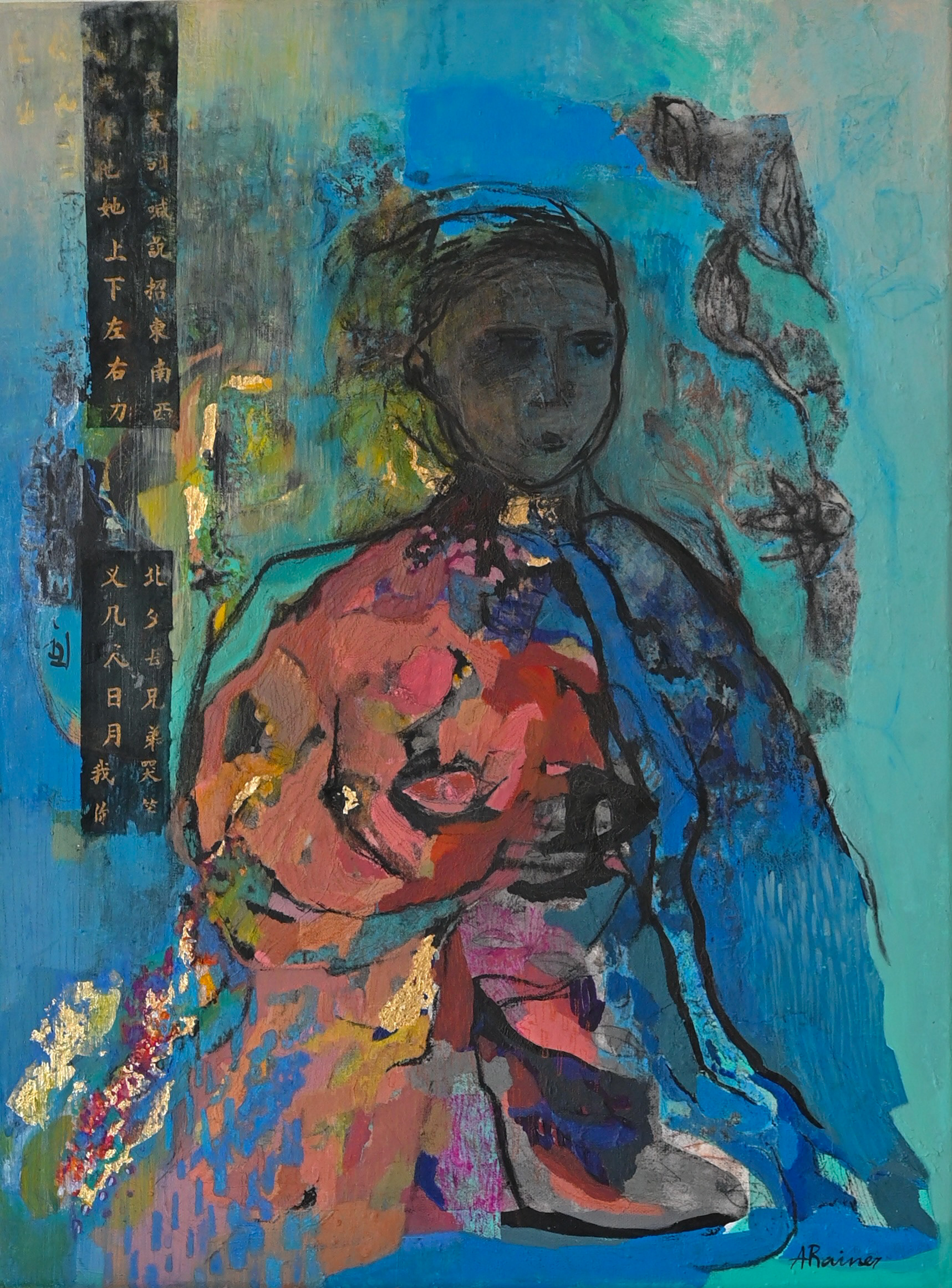 Medium: Acrylic, paper, water color, gold leaf, charcoal