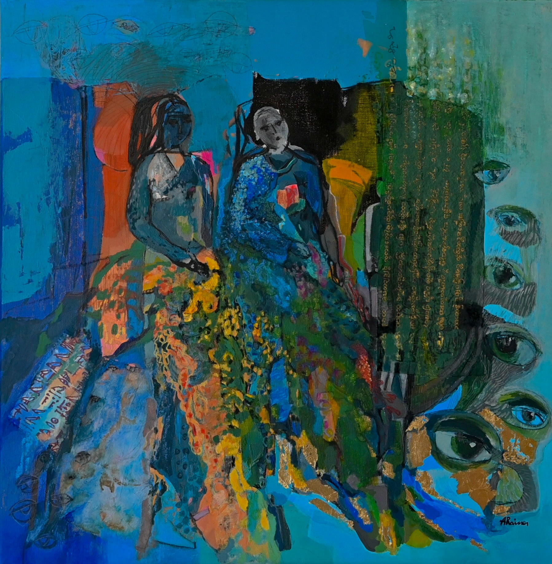 Medium: Acrylic, paper, water color, gold leaf, charcoal